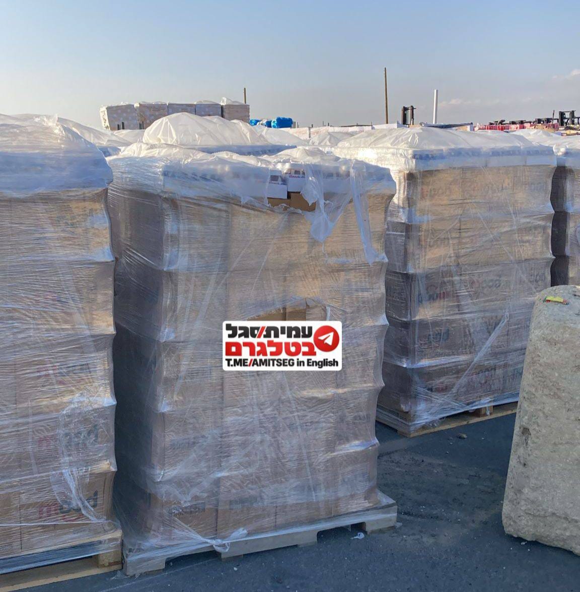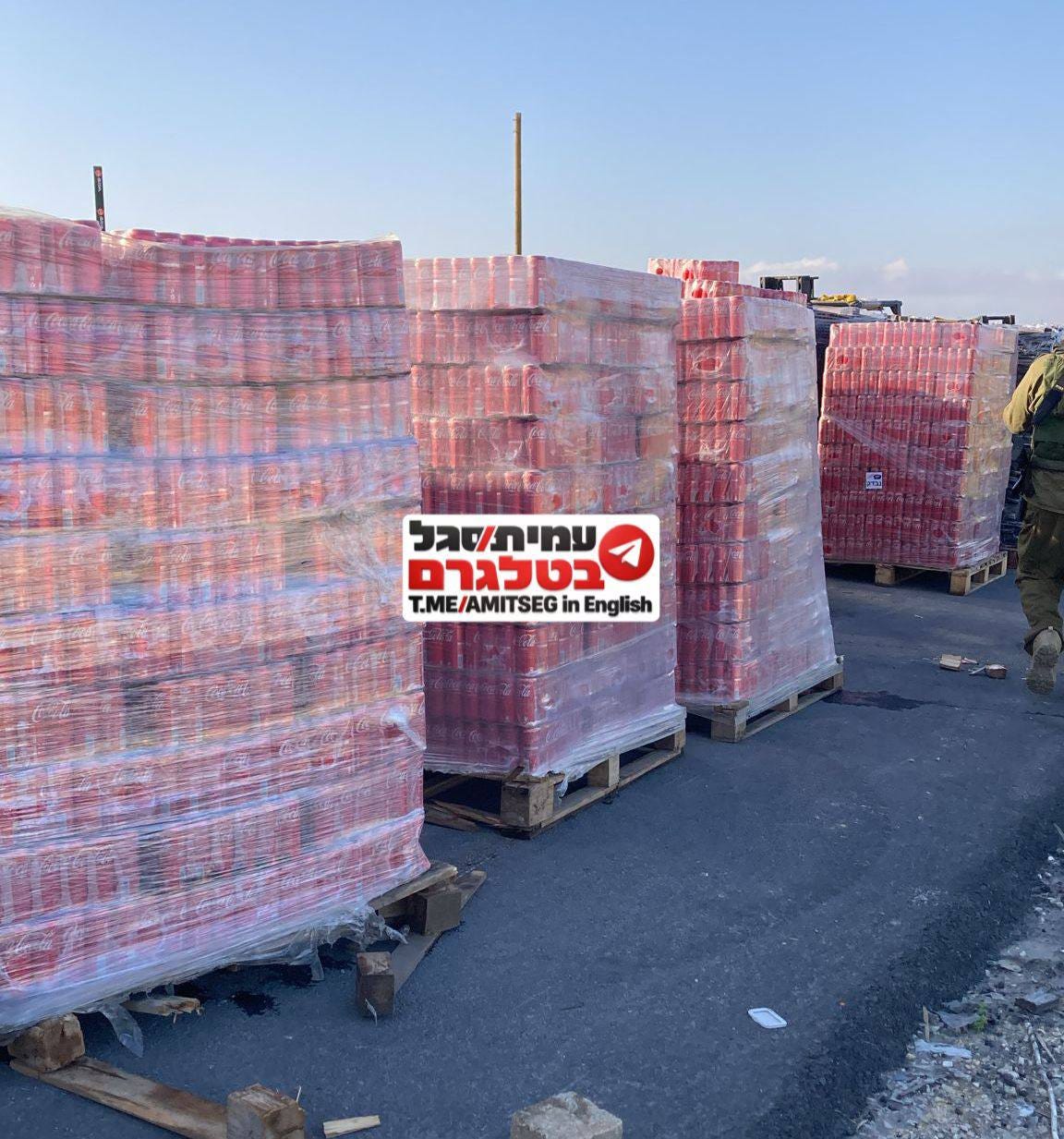 Pallets of Coca-Cola being prepared to be brought into Gaza.