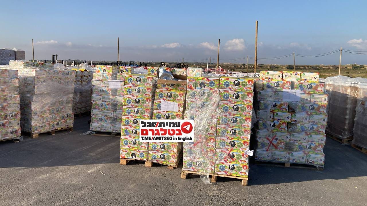 According to the ceasefire agreement, 600 trucks of aid must be brought into Gaza every day. According to the soldiers managing the transfer, the storage facilities are already filled with flour, clean drinking water and other necessities, so Israel has been resorting to sweets to fill out their quotas.