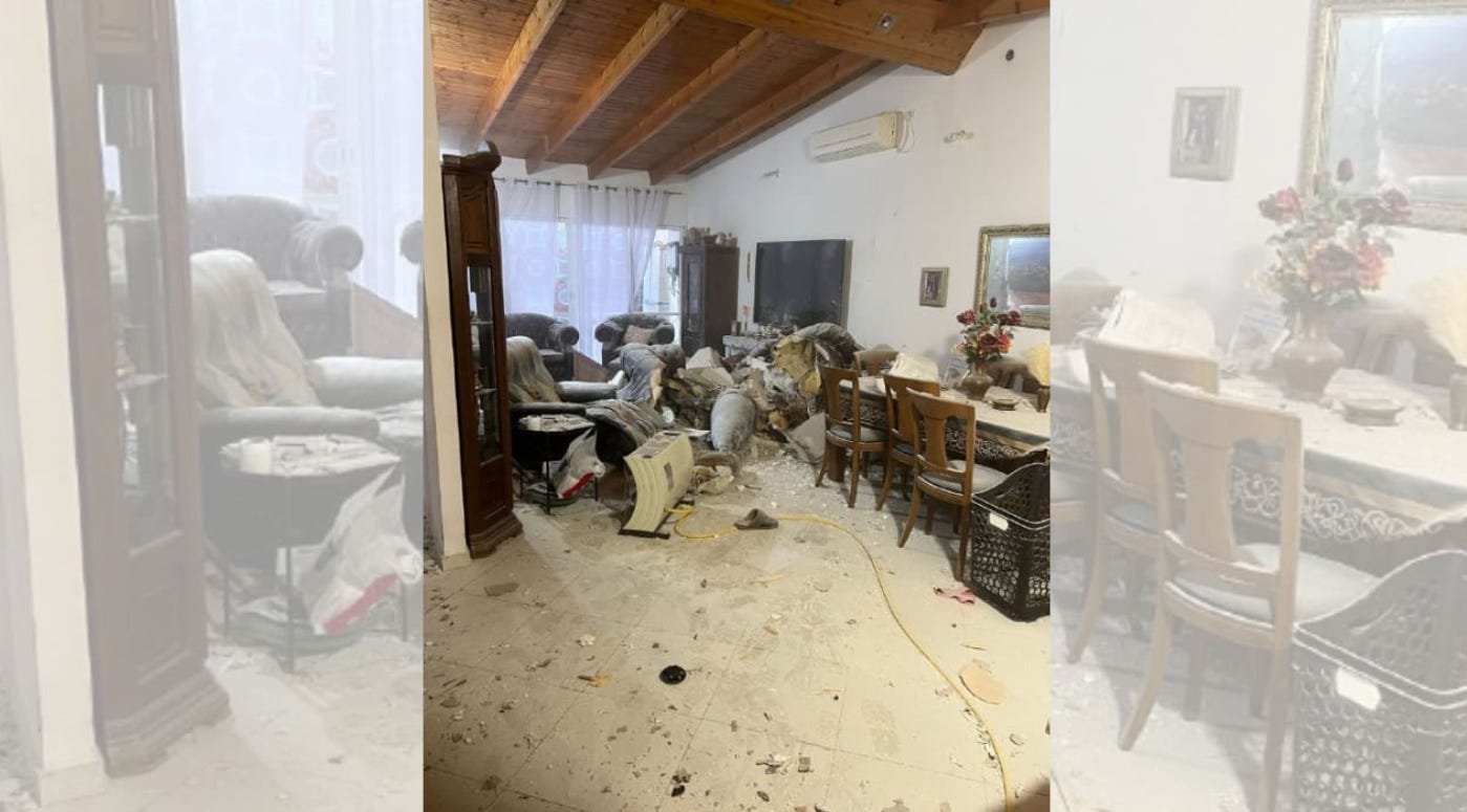 The aftermath of shrapnel falling on a residence this morning. (Magen Dovid Adom)