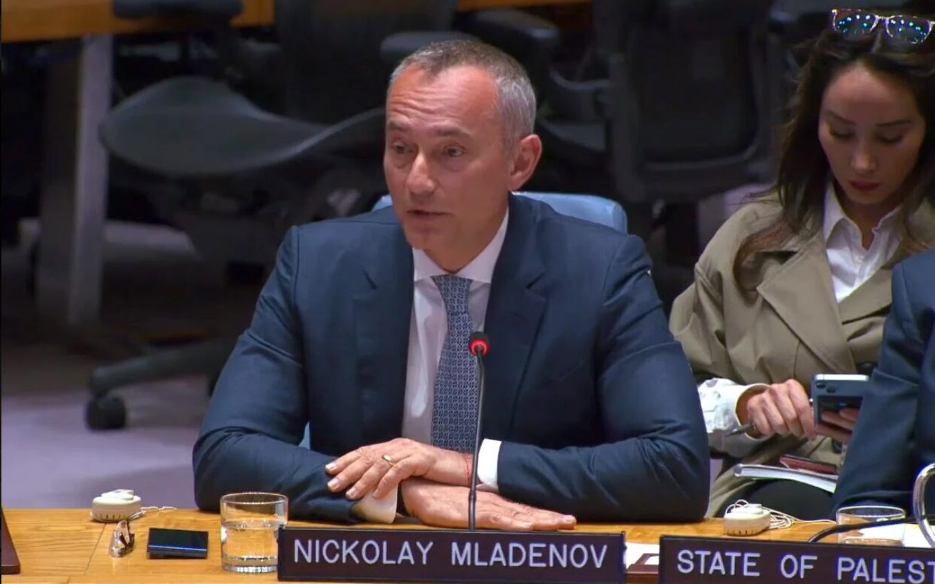 Board of Peace High Representative for Gaza Nickolay Mladenov addresses the UN Security Council in March. (Screen capture/YouTube)