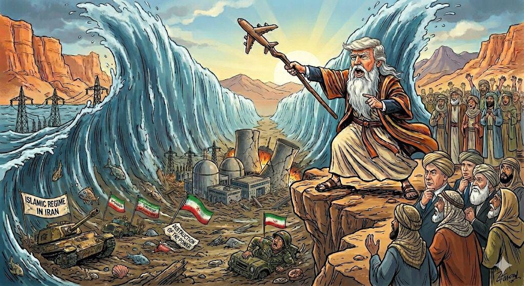 Unlike the enterprising Ben Aminadav, preparations have been made for this sea-splitting event. Yesterday, Israel targeted Iran’s largest petrochemical facility in Asaluyeh. Combined with last week’s hit on a second major facility, the IDF has taken out plants responsible for roughly 85 percent of Iran’s petrochemical exports. Today, an Israeli source indicated that railway infrastructure in Iran will be targeted next.