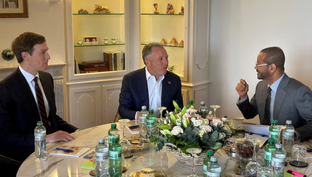 US Special Envoy Steve Witkoff and Jared Kushner meeting with Oman’s Foreign Minister, Sayyid Badr Hamad Al Busaidi at the negotiations in Geneva in February.