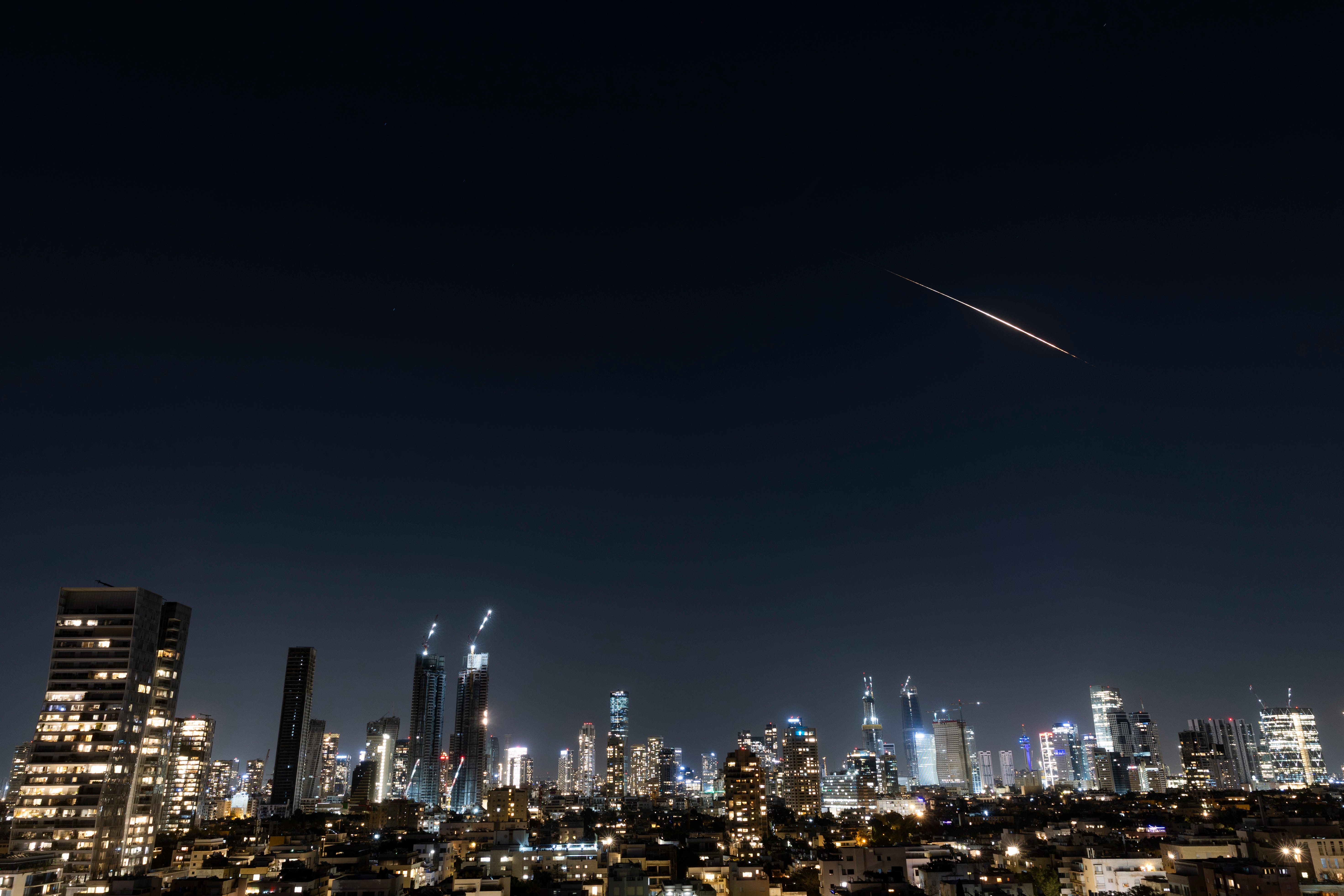 Anti-missile batteries fire interception missiles toward incoming ballistic missiles launched from Iran over Jerusalem last night. (Chaim Goldberg/Flash90)