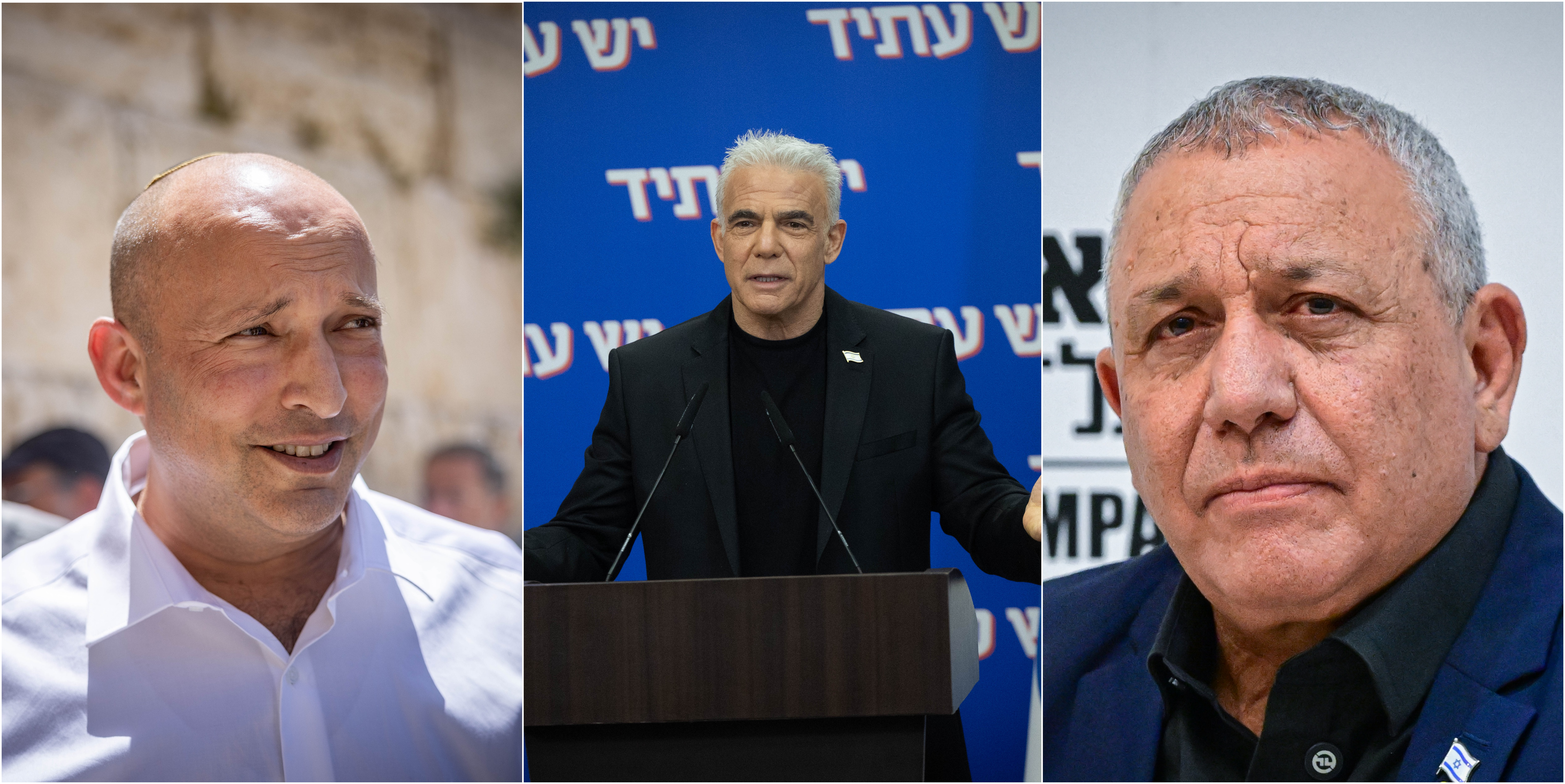 Naftali Bennett, Yair Lapid, and Gadi Eisnekot. (Yonatan Sindel/Avshalom Sassoni/Flash90)