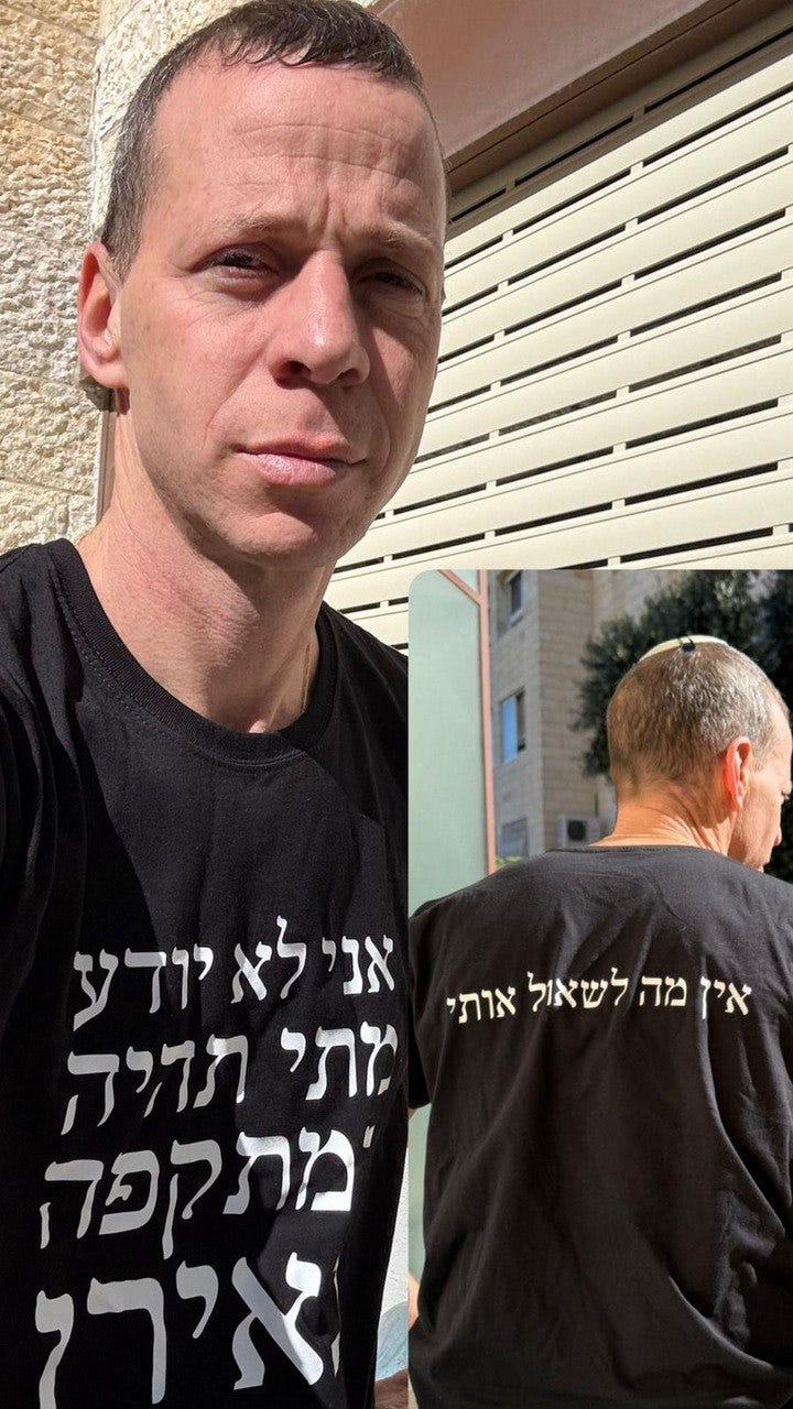 The front says “I don’t know when the Iran strike will be,” the back reads “there is nothing to ask me.”