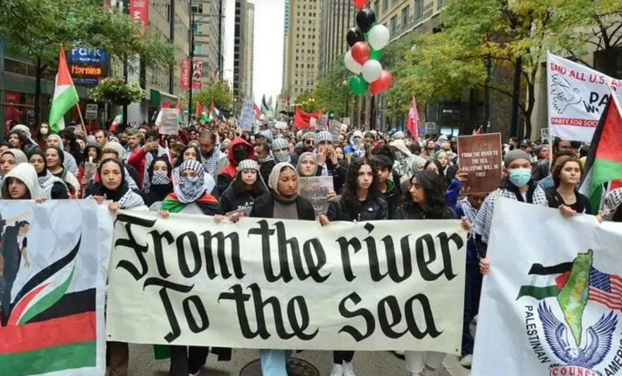 An anti-Israel demonstration in Chicago, Illinois, Oct. 8, 2023. (Combat Antisemitism Movement)