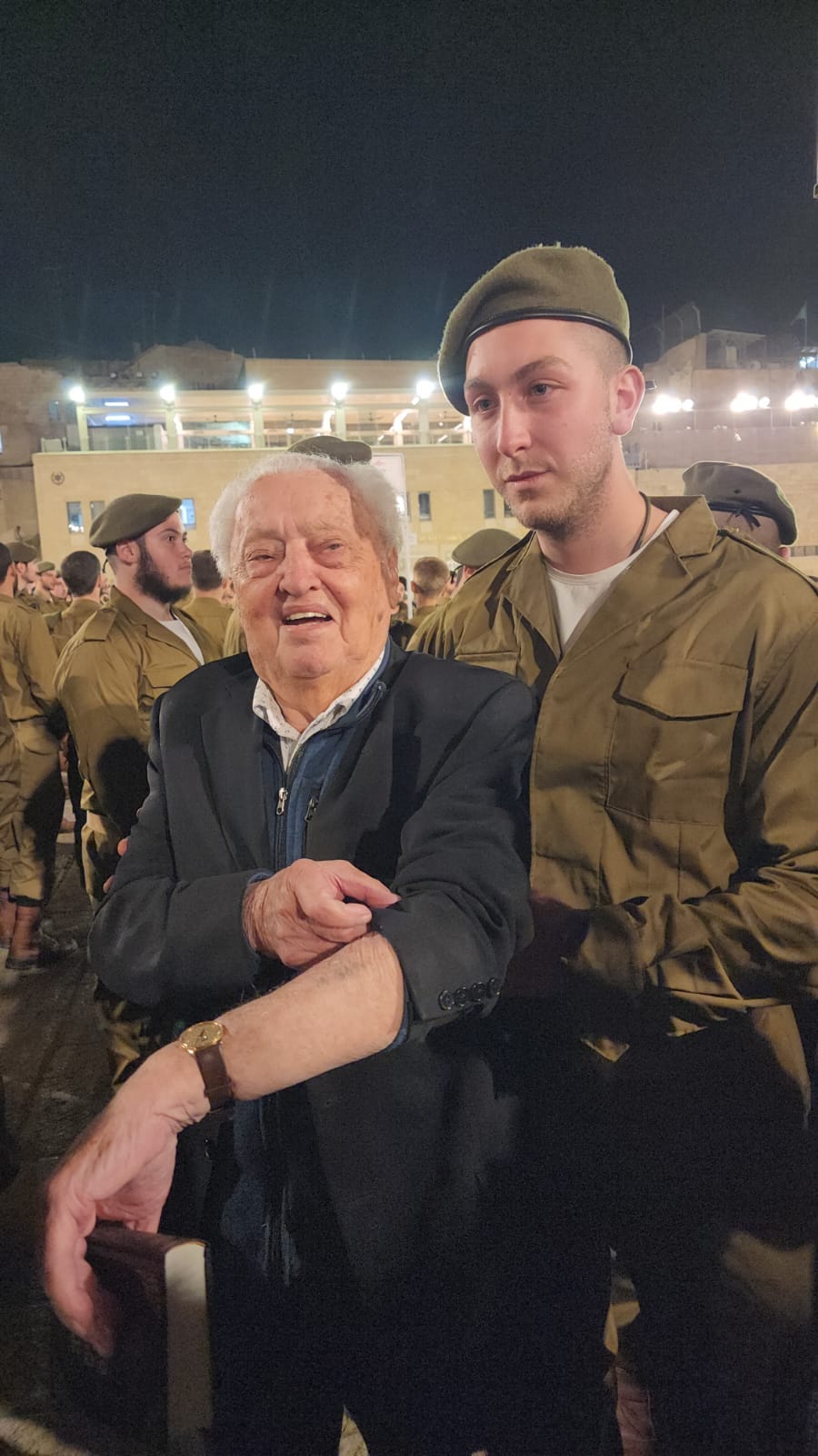 And this moment carries something else too: the grandson comes from a part of Israel that, for years, stood apart from the army. Perhaps in another 80, this soldier will stand beside his own grandson—joining an army that truly represents all of Israel.